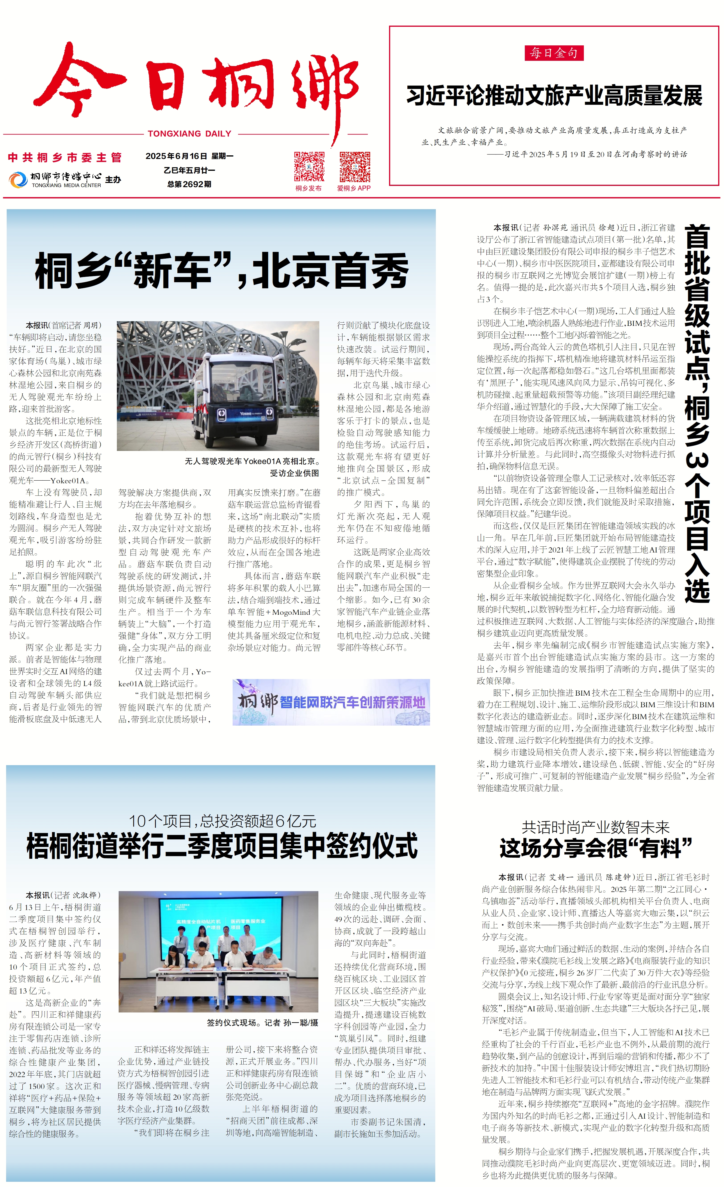 这既是两家企业高效合作的成果,更是桐乡智能网联汽车产业积极“走出去”,加速布局全国的一个缩影。如今,已有30余家智能汽车产业链企业落地桐乡,涵盖新能源材料、电机电控、动力总成、关键零部件等核心环节。